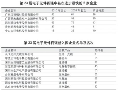 國(guó)際金融危機(jī)造成的企業(yè)經(jīng)營(yíng)上的波動(dòng)反饋到了第22屆、23屆元件百?gòu)?qiáng)的榜單上。在近兩屆的榜單之中,均有20家左右企業(yè)的名次出現(xiàn)了10位以上(含10位)的較大波動(dòng),去年23家,今年20家。據(jù)估計(jì),如果國(guó)際國(guó)內(nèi)的經(jīng)濟(jì)形勢(shì)能保持穩(wěn)定,在未來一兩年內(nèi),元件百?gòu)?qiáng)榜單中,名次出現(xiàn)大起大落的企業(yè)數(shù)量將會(huì)減少。