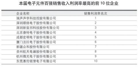 與上屆元件百?gòu)?qiáng)利潤(rùn)水平大幅下滑的情況相比,本屆元件百?gòu)?qiáng)企業(yè)的贏利情況尚能讓人欣慰。本屆元件百?gòu)?qiáng)共實(shí)現(xiàn)利潤(rùn)90.56億元,已接近2008年(第21屆)元件百?gòu)?qiáng)的利潤(rùn)總額,同比增長(zhǎng)9.74%。這也是元件百?gòu)?qiáng)20多年來首次出現(xiàn)利潤(rùn)總額增幅高于銷售收入增幅的情況。出現(xiàn)這種難得情況的原因在于,國(guó)際金融危機(jī)的爆發(fā),一方面,迫使元件百?gòu)?qiáng)企業(yè)采用各種方法,比如裁員減薪等降低運(yùn)營(yíng)成本;另一方面,國(guó)際金融危機(jī)使原材料價(jià)格大幅下降,也促使企業(yè)的生產(chǎn)成本進(jìn)一步降低。所以,雖然企業(yè)的整體銷售收入下降較大,但對(duì)利潤(rùn)的影響程度稍輕,在本屆元件百?gòu)?qiáng)中,有24家企業(yè)出現(xiàn)了銷售收入減少,利潤(rùn)反增的情況。