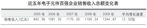 在本屆元件百?gòu)?qiáng)當(dāng)中,有33家企業(yè)2009年的銷售收入超過10億元,比上屆增加3家;有6家企業(yè)超過50億元,與上屆持平。