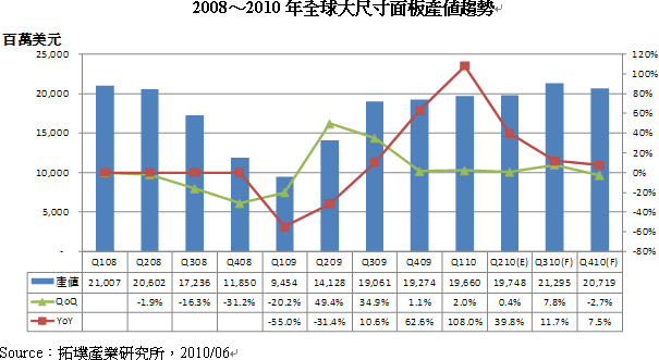 • 2010年全球各季面板產(chǎn)值穩(wěn)定