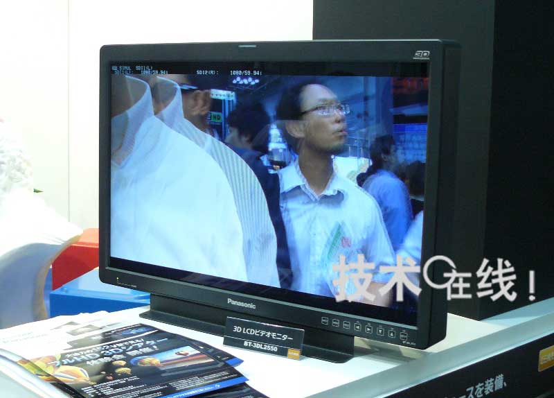 松下的3D液晶顯示器畫面尺寸為25.5英寸,像素為1920×1200。預(yù)定近期上市,價(jià)格為100萬(wàn)8000日元。支持隔行交互配置左眼及右眼用影像信號(hào)的“Line-By-Line方式”、分兩條信號(hào)線發(fā)送左眼及右眼用影像信號(hào)的“Simul方式”、以及將左眼及右眼用影像信號(hào)只在水平方向壓縮至1/2左右配置的“Side-By-Side方式”。預(yù)定2010年秋季上市采用120Hz驅(qū)動(dòng)PDP及液晶快門配備型眼鏡、支持“Frame Sequencial方式”的3D顯示器。
