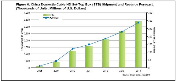 - 2010年中國(guó)高清有線機(jī)頂盒(STB)出貨量有望增長(zhǎng)近兩倍