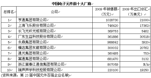 第23屆中國元件百強企業(yè)名單于2010年6月22日公布。從本次百強企業(yè)的評選結(jié)果,以及中國電子元件行業(yè)協(xié)會(下簡稱中電元協(xié))公布的數(shù)據(jù)上可以看出,在經(jīng)歷了全球經(jīng)濟危機之后,中國電子元件行業(yè)正在穩(wěn)步復(fù)蘇,眾多元件企業(yè)正在積極尋求在“后危機時代”的生存和發(fā)展之道。