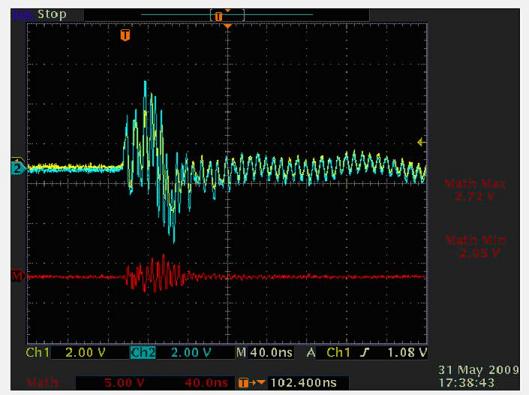 基本上,由于客戶有好的連接器結構和PCB設計,當雷擊發生時,它能通過結構和PCB設計釋放,從這個+6KV雷擊測試結果看,我們發現波形看起來像振鈴,在PHY端鉗位電壓非常低,這說明大部分雷擊能量已被釋放,這時能很好的保護PHY芯片。