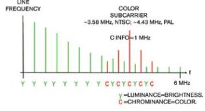 圖1:亮度信息和色度信息共享復(fù)合視頻信號(hào)的同一頻譜。