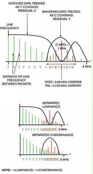 - 利用陷波濾波器或帶通濾波器分離亮度和色度