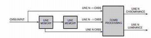 2D梳狀濾波器的工作原理是:如果圖像目標(biāo)行的上下存在類(lèi)似幾行,色度和亮度就可以更徹底地分離。