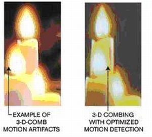 與之相反,配有3D梳狀濾波器的高性能視頻解碼器利用很多幀存儲(chǔ)器來(lái)更準(zhǔn)確地檢測(cè)所有幀之間的運(yùn)動(dòng)。使用大量的幀很有必要,有助于解碼器準(zhǔn)確判斷何時(shí)何地采用3D梳狀濾波器。