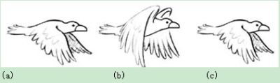 圖11:自適應(yīng)3D梳狀濾波器依賴(lài)解碼器來(lái)正確檢測(cè)圖像移動(dòng)。這是鳥(niǎo)舞動(dòng)翅膀的正常順序-向下(a),向上(b),再向下(c)。