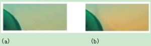 圖12:利用3D梳狀解碼器,無(wú)效檢測(cè)引起明顯的網(wǎng)格偽像(a)。圖像移動(dòng)校正后,無(wú)網(wǎng)格偽像生成(b)。