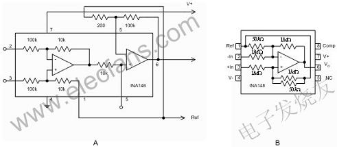 圖1在高壓側電流檢測中,共模電壓是主要問題老式分路檢測電路基于差動放大器,即周圍帶四個電阻來設置增益并提供差動輸入的運算放大器(operationamplifier)。這些電阻使運算放大器能接受超過其電源軌的共模電壓。不過,這也會帶來下面一些負面問題:一是電路必須配置為衰減器,在隨后的運算放大器級中恢復增益,如圖2A中的IC結構圖所示,運算放大器的增益會成倍增大第一個放大器的偏置和漂移量,從而降低整體性能。二是采用高共模電壓差動放大器要增加電阻網絡,以使之在仍然只提供單位增益的同時能夠接受較高的共模電壓。高共模差動放大器帶來的影響在于:運算放大器的噪聲增益與共模衰減成正比,如圖2B所示的差動放大器結構采用了20:1的內部共模衰減,此舉使放大器的偏置、漂移和噪聲都比運算放大器本身擴大了20倍。此外,較大的輸入電阻也會造成較高的噪聲。