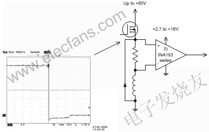 車載電流檢測分為兩大類型:一類是直接連接到電池,另一類是通過限制瞬態偏移的保護電路連接。上述情況會影響電流分路監控器上共模電壓額定值的要求。車載的12V電子系統最高電壓為14.4V,但電池總線器件上的瞬態電壓最高可達75V,甚至會發生電池換極。我們還要考慮到另一種共模情況:電源線路的分路開啟,且接地短路的情況。這時共模電壓為零。電流流動時必須進行檢測,也就是說,放大器在零共模電壓時也要能正常工作。最后,我們不妨考慮一下如圖4所示的脈沖寬度調制(PWM)螺線管驅動器的情況。在本例中,螺線管頂部開啟時達到電池電壓。開關關閉時,電壓將回到二極管電壓降大小的負電平上。這就要求電流分路監控器在低至–2V的共模電壓下仍能工作。