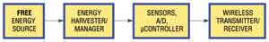 在這電路中,除了能量源本身,每個電路系統模塊都受到一些特殊的限制,從而影響了它們在商業中的應用。低成本、低功率的傳感器和微控制器已經上市相當一段時間了,不過只是在最近兩三年,超低功率收發器才商用化。盡管如此,在這電路中,落后的一直是能量采集器和電源管理器。