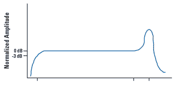 壓電傳感器可以感測滾軸所產生的振動頻率及超聲波噪聲。壓電傳感電路由MOSFET為其提供內部緩沖,而驅動MOSFET的電流則來自A4的恒流源,通過交流耦合在內部連接到濾波器。A1、A2及A3放大器組成一6極點低通濾波器并提供41.9dB的增益。取樣率為200kHz的ADC121S021模擬/數字轉換器負責將已放大及濾波的信號轉為數字信號。微處理器的軟件可以通過快速傅里葉變換(FFT)取得有關信號頻率及振幅的數據。圖中所示電路的通帶約為40kHz。圖2則顯示典型寬頻帶振動傳感器的傳遞函數。