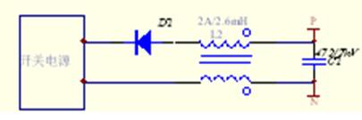 第一種方法的抗干擾設計考慮如圖7所示,圖中的高頻電容C1用來吸收高頻脈沖,二極管D2用來抑制線路寄生電感與電容C1振蕩。