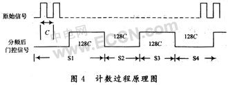 對(duì)信號(hào)M分頻后觸發(fā)產(chǎn)生門控信號(hào)對(duì)時(shí)標(biāo)信號(hào)計(jì)數(shù)(如圖2所示)。