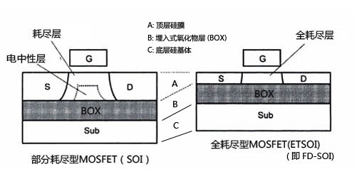 SOI晶圓制備技術的發展也為FDSOI投入應用提供了良好的支撐。為了使晶體管獲得理想的性能,FDSOI晶圓的頂層硅膜和隱埋氧化層(Buried Oxide,BOX)須非常薄。目前市場上已出現相應的產品,可滿足現階段的應用需求。