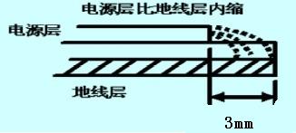 圖2 電源層比地線層內(nèi)縮示意圖
