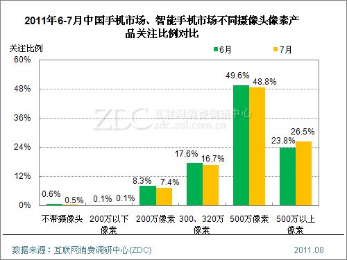 • 500萬以上像素智能手機關注比例較上月顯著增長2.7%