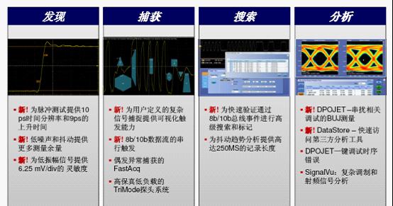 圖4:從發現、捕獲到搜索、分析,DPO/DSA70000D系列33GHz示波器囊括了多個行業第一和關鍵創新點。