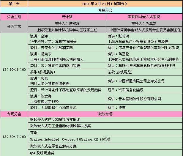 2011中國國際嵌入式大會暨展覽會日程表