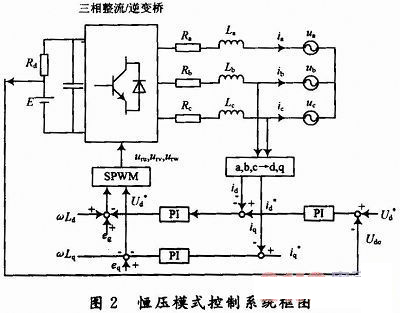 (2)恒壓模式。恒壓模式是以輸出電壓作為反饋量,控制系統保持蓄電池充放電裝置輸出電壓恒定。