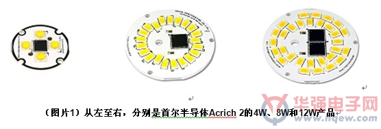 全球領(lǐng)先的LED供應(yīng)商首爾半導(dǎo)體今天宣布推出新品“Acrich 2”,該產(chǎn)品具有使用壽命長,能源消耗低和設(shè)計(jì)便捷等特點(diǎn)。這款新產(chǎn)品將以4W、8W、12W和16W的模塊形式推出。該產(chǎn)品將提供一個(gè)具有替代性的LED解決方案,它不但能取代40W、60W和100W的白熾燈,同時(shí)還能代替MR16鹵素?zé)艉屯矡簟?