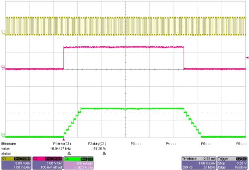 圖 2 10 kHz 時鐘頻率時的 LED 開啟和關閉情況