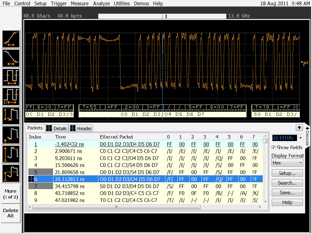 安捷倫科技有限公司日前宣布推出以太網(wǎng) 64b/66b 協(xié)議解碼與觸發(fā)應(yīng)用軟件,進一步擴展了其 Infiniium 示波器應(yīng)用軟件系列。Agilent Infiniium 系列是業(yè)界首款也是唯一一款支持 64b/66b 觸發(fā)與協(xié)議解碼的示波器產(chǎn)品。