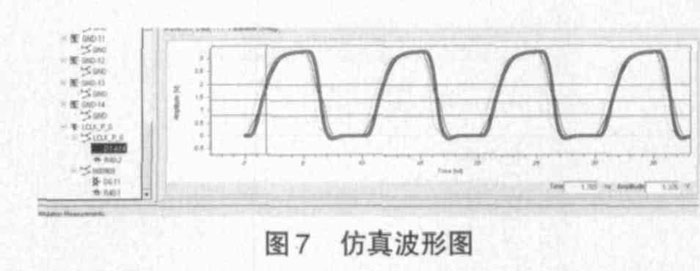 此印制板上100M 的時(shí)鐘信號(hào)線經(jīng)過設(shè)計(jì)軟件仿真分析,如圖7 所示,信號(hào)傳輸基本沒有受到干擾,達(dá)到電訊要求。生產(chǎn)的印制板經(jīng)過調(diào)試顯示,數(shù)字信號(hào)對(duì)模擬信號(hào)的干擾很小,參數(shù)指標(biāo)良好。
