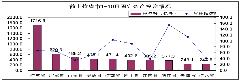 - 1-10月,東部10省市完成投資4328億元,同比增長70%