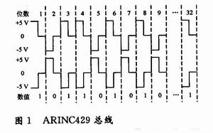 ARINCA29總線(xiàn)是一種單向廣播式數(shù)據(jù)總線(xiàn),采用雙角屏蔽線(xiàn)傳輸信息,可由兩根獨(dú)立總線(xiàn)實(shí)現(xiàn)雙向傳輸,數(shù)據(jù)傳輸率為:高速傳輸?shù)奈凰俾蕿?00 Kb/s±1%,低速傳輸?shù)奈凰俾蕿?12.0~14.5)Kb/s±1%。ARINC429規(guī)定數(shù)據(jù)傳輸采用雙極性歸零制的三態(tài)碼方式,如圖1所示,即調(diào)制信號(hào)由“高”、“零”和“低”狀態(tài)組成的三電平狀態(tài)。雙極性歸零碼的基本信號(hào)波形中攜帶了位同步信息,位同步是由零狀態(tài)變至“高”或“低”狀態(tài)的這一狀態(tài)變化來(lái)識(shí)別。字同步是以傳輸周期間至少有四個(gè)位時(shí)的時(shí)間間隔為基準(zhǔn),緊跟該字間隔后要發(fā)送的第一位起點(diǎn)即為新字的起點(diǎn)。