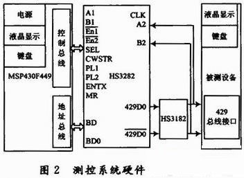 接口的實(shí)現(xiàn)方式選用Intersil公司的HS3282芯片,它支持ARINC429通信規(guī)范和其他串行數(shù)據(jù)傳輸協(xié)議,采用+5 V供電。具有兩路接收、一路發(fā)送的功能。通道接收器之間也是獨(dú)立的并行接收,可以直接連接到ARINC429總線(xiàn),而不需電平轉(zhuǎn)換。使用時(shí)和HS3182總線(xiàn)驅(qū)動(dòng)器配合,就可以發(fā)送數(shù)據(jù)進(jìn)行二級(jí)差分驅(qū)動(dòng),產(chǎn)生ARINC429總線(xiàn)的電平。HS3282數(shù)據(jù)總線(xiàn)為16位,MSP430F449為16位單片機(jī),從而避免了8位單片機(jī)為解決系統(tǒng)總線(xiàn)匹配的問(wèn)題需要采用鎖存器作為虛擬總線(xiàn)的煩惱,提高了測(cè)控系統(tǒng)的可靠性。