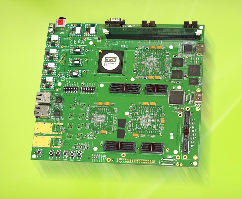 此開發(fā)工具套件包括:6.5Gbps光收發(fā)器、雙端口1Gbps以太網(wǎng)、1GB DDR2存儲器、64MB SSRAM存儲器、HDMI進(jìn)/出端口、雙串行RapidIO收發(fā)器和數(shù)個可以增加SoC專用邏輯的大型用戶可編程FPGA模塊。CEVA-XC323硅片采用65 nm工藝生產(chǎn),包括CEVA-XC323 DSP、一個功率調(diào)節(jié)單元(PSU)、兩個XC-DMA控制器、程序緩存(512KB L1數(shù)據(jù)和1MB共享 L2存儲器)、外部64/128位 AXI主接口和從接口、32位主APB接口、多個高效主/從存儲器接口、功率管理單元(PMU)、定時器、中斷控制單元(ICU)、GPIO等。