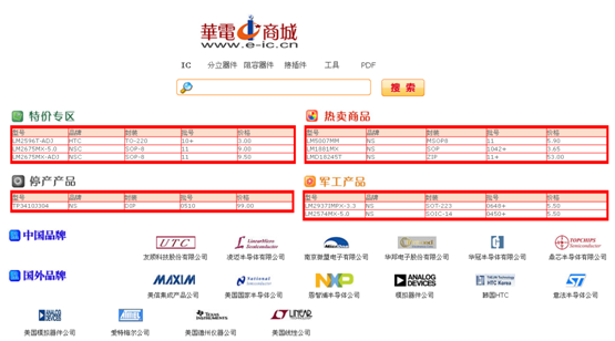 華明科技(國際)有限公司是一家從事現貨庫存的IC分銷商。近日,在本屆中國(深圳)電子展上,華明科技全面推出全新打造的電子元器件網購平臺——華電商城(http://www.e-ic.cn)。通過華電商城的線上交易,不設最低采購量,價格透明,華明科技的IC分銷有了很好的補充。