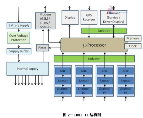 可以利用串行接口從EM4T II讀取數據。從EM4T II內的數據處理系統中將數據提取出來然后通過通信網絡傳輸到地面系統。EM4T II可以配置第2個接口,確保系統符合任何鐵路運營商的特定要求?! ?br />