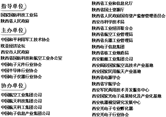 從1996年算起,中國西部國際電子工業暨國防電子博覽會在西安先后共舉辦過十七屆,其中國防電子展舉辦了九屆,2004年起新增軍民兩用技術展與大會同期開展(該會于2006年起,正式更名為中國國際和平利用軍工技術與裝備(西安)博覽會),已連續舉辦過五屆。自2009年9月起,大會正式更名為“中國國際軍民結合技術產業博覽會”。