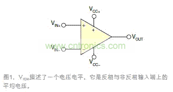 認(rèn)識(shí)VICM還有一種方式,即它是非反相和反相輸入端VIN+與VIN-的公共的電壓電平。在大多數(shù)應(yīng)用中,VIN+非常接近于VIN-,因?yàn)殚]環(huán)負(fù)反饋會(huì)使一個(gè)輸入端密切跟蹤另一個(gè)輸入端,使VIN+與VIN-之間的壓差接近于零。很多共模電路都是這種情況,包括電壓跟隨器,以及反相和非反相配置。這些情況下,通常會(huì)假設(shè)VIN+=VIN-=VICM,因?yàn)檫@些電壓幾乎是相同的。