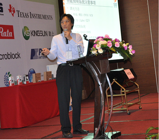 晶門科技有限公司業(yè)務(wù)營(yíng)運(yùn)總監(jiān)區(qū)偉江通過(guò)《步入智能環(huán)保新紀(jì)元》的主題演講,講述晶門科技的智能模塊解決方案,通過(guò)它的智能接口,采用PWM或模擬調(diào)光,可接駁不同的控制系統(tǒng)。其獨(dú)特的模塊化設(shè)計(jì),可以結(jié)合DALI,ZigBee或藍(lán)牙等遙控系統(tǒng)成為小巧的系統(tǒng)設(shè)計(jì)。