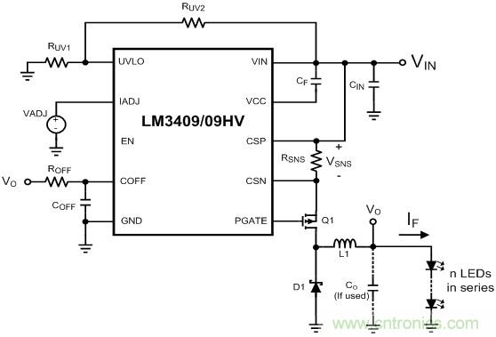圖4:LM3409/09HV降壓LED驅(qū)動(dòng)器