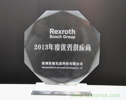 圖1:世強獲博世力士樂(西安)2013年度優秀供應商獎