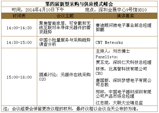 此次峰會旨在幫助供需雙方的經(jīng)理人了解熱點市場帶來的對半導體元器件的需求變化,中國小批量供應服務與采購趨勢。圓桌討論將針對采購和供應中的熱點話題,中國電子分銷商聯(lián)盟秘書長劉杰博士與行業(yè)領(lǐng)先的國內(nèi)和國際分銷商總裁和總監(jiān)們逐一分享思路,歡迎參與互動。參會可以通過網(wǎng)上或微信(關(guān)注我愛方案網(wǎng)),報名注冊:m.longhushijia.cn/seminar/95/agenda