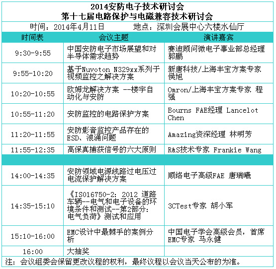 3.2014安防電子技術(shù)研討會暨第十七屆電路保護與電磁兼容技術(shù)研討會 (4月11日,深圳會展中心六樓水仙廳)