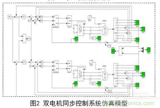 系統在采用偏差耦合控制策略的基礎上加入PID控制補償器,使系統能夠很好的實現同步控制。每臺電機都采用專門的控制器和速度補償模塊,通過svpwm方式對電機進行調速,并采用電流環與速度環的雙閉環控制,即每臺電機及其控制器組成一個閉環系統,各子系統之間通過速度補償模塊進行耦合,形成完整的控制系統,增強了系統的抗干擾性。仿真結果表明,基于svpwm的PID雙閉環系統具有超調量小、響應迅速、魯棒性強等特點,而加入偏差耦合控制策略的雙電機控制系統具有良好的同步性。