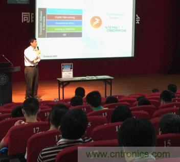 圖2:e絡(luò)盟與重要技術(shù)合作伙伴飛思卡爾、松下、TE Connectivity及是德科技開展的大學(xué)路演活動(dòng)現(xiàn)場(chǎng)之一