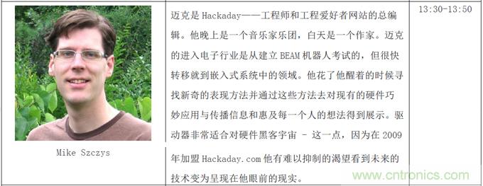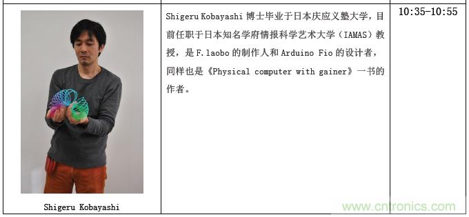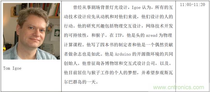 本次創(chuàng)客論壇三天共三個主題:啟蒙創(chuàng)新、創(chuàng)客本質(zhì)和協(xié)同合作,將邀請到包括暢銷書《失控》作者Kevin Kelly、克萊舍基、Arduino開源電子原型開發(fā)平臺聯(lián)合創(chuàng)始人Massimo Banzi、第一個生物創(chuàng)客空間BioCurious聯(lián)合創(chuàng)始人Tito Jankonski、F.laobo的制作人和ArduinoFio的設(shè)計者Shigeru Kobayashi、Intel最小的實習(xí)生Joey Hudy和為麻省理工研究生授課的14歲電子神童QuinEtnyre等等共50余位來自全世界各地的創(chuàng)新領(lǐng)域領(lǐng)軍人物。