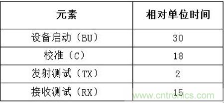 這里基于這一測試配置來討論不同的方法。為了比較這些方法,此處將一個典型的WLAN測試分成以下幾個常見的步驟,并規(guī)定了它們的相對時間單位,如表1所示。