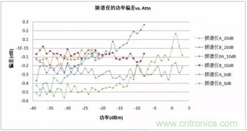 這個(gè)測(cè)試結(jié)果顯然說明了頻譜分析儀的輸入衰減器的精度。