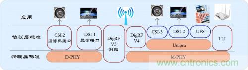 MIPI聯(lián)盟有不同的工作組,分別定義一系列的手機內(nèi)部接口標準,如攝像頭接口CSI、顯示接口DSI、射頻接口DigRF等。統(tǒng)一接口標準的好處是手機廠商可以根據(jù)需要從市面上靈活選擇不同的芯片和模組,方便快捷的進行外觀和功能的設(shè)計。