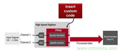 另一方面,數(shù)字化儀依靠計(jì)算機(jī)上的應(yīng)用軟件來(lái)完成大量分析。一些數(shù)字化儀允許訪問(wèn)板載 FPGA(現(xiàn)場(chǎng)可編程門(mén)陣列),因此可以在儀器中添加自定義代碼、濾波器、校正或數(shù)據(jù)壓縮方案。這樣的例子包括向輸出添加算數(shù)運(yùn)算,或隨附查詢表來(lái)更改輸出。在某些情況下,您可能需要將自定義 IP 添加到儀器中來(lái)執(zhí)行特殊功能。在儀器 FPGA 中添加定制功能可以增加儀器功能、降低成本、縮短開(kāi)發(fā)時(shí)間,還可以提高測(cè)量速度。它也可以用于計(jì)算,所以您只需要處理數(shù)據(jù)輸出即可,減少了要管理的數(shù)據(jù)量。